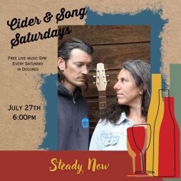 SteadyNOW, a duo from Bayfield, will perform music at Cider and Song Saturdays in Dolores at EsoTerra Ciderworks on July 27th, starting at 6pm.
