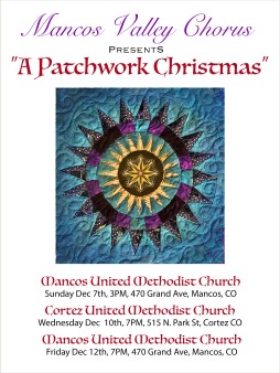The Mancos Valley Chorus will present, "A Patchwork Christmas", at The First United Methodist Church in Cortez on Wednesday, December 10th at 7:00pm.