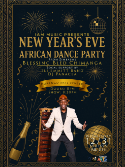 Durango Arts Center and The iAm Music Institute will host a New Year's Eve African Dance Party on Wednesday, December 31st from 8:00pm.